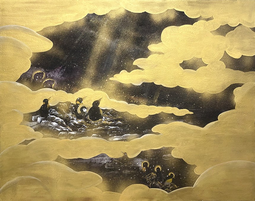 墨 植物 礦物繪具 金箔 高知麻紙 / 80 x 100 cm